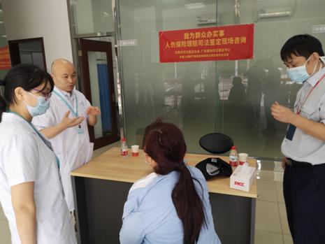 在活动现场,司法鉴定人为一争议案件的伤者进行现场检查,明确其伤残等级,并就伤者目前存在的功能障碍情况,与伤者及其家属进行了沟通和交流,消除了他们的疑虑和误解。